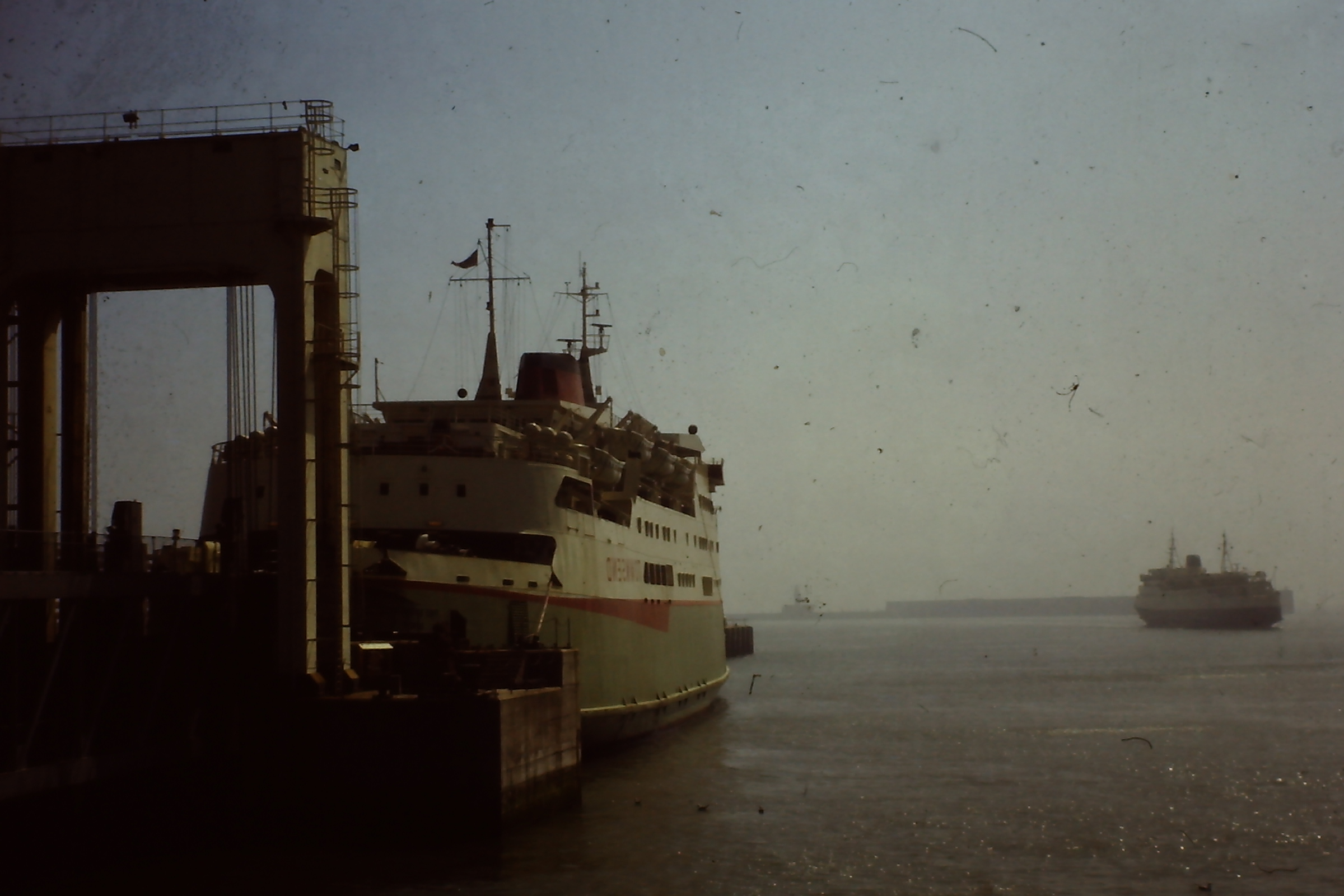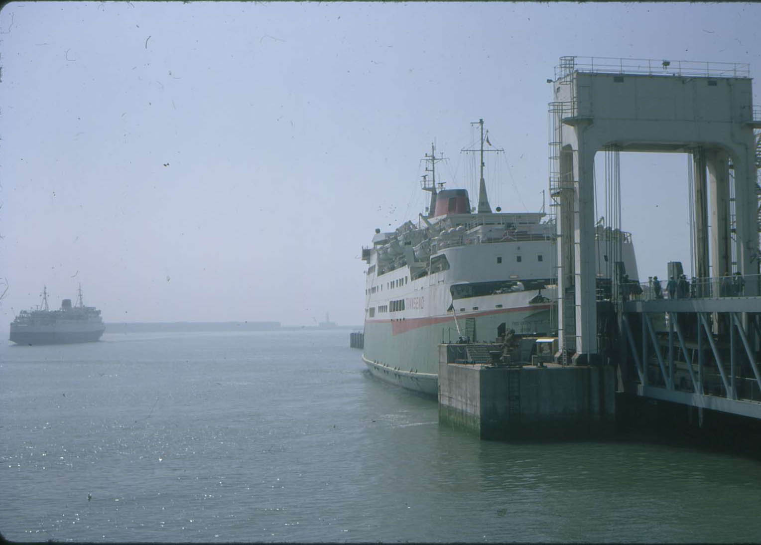 a cheery paw. Patiently berthed alongside was the Townsend-Thoresen ferryboat, MS Free Enterprise IV, equally smart and freshly launched in the